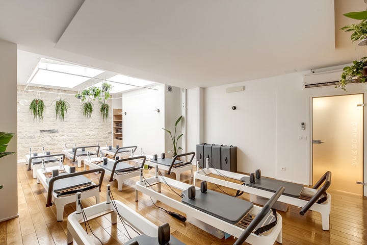 In Paris, I’ve tried many group classes — pilates, yoga in all its forms, boxing, cycling, and some private reformer sessions. Here are my three favorites right now: